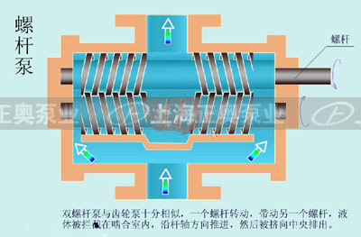 正奧雙螺桿泵的種類較多,它們是由不同的螺桿螺旋形面(即螺旋齒形曲線也稱型線)構(gòu)成不同類型的雙螺桿泵。雙螺桿泵有密封型和非密封型兩大類。 雙螺桿泵作為一種容積式泵,泵內(nèi)吸入室應(yīng)與排出室嚴密地隔開。因此,泵體與螺桿外圓表面及螺桿與螺桿間隙應(yīng)盡可能小些。同時螺桿與泵體、螺桿與螺桿間又相互形成密封腔,保證密閉,否則就可能有液體從間隙中倒流回去。