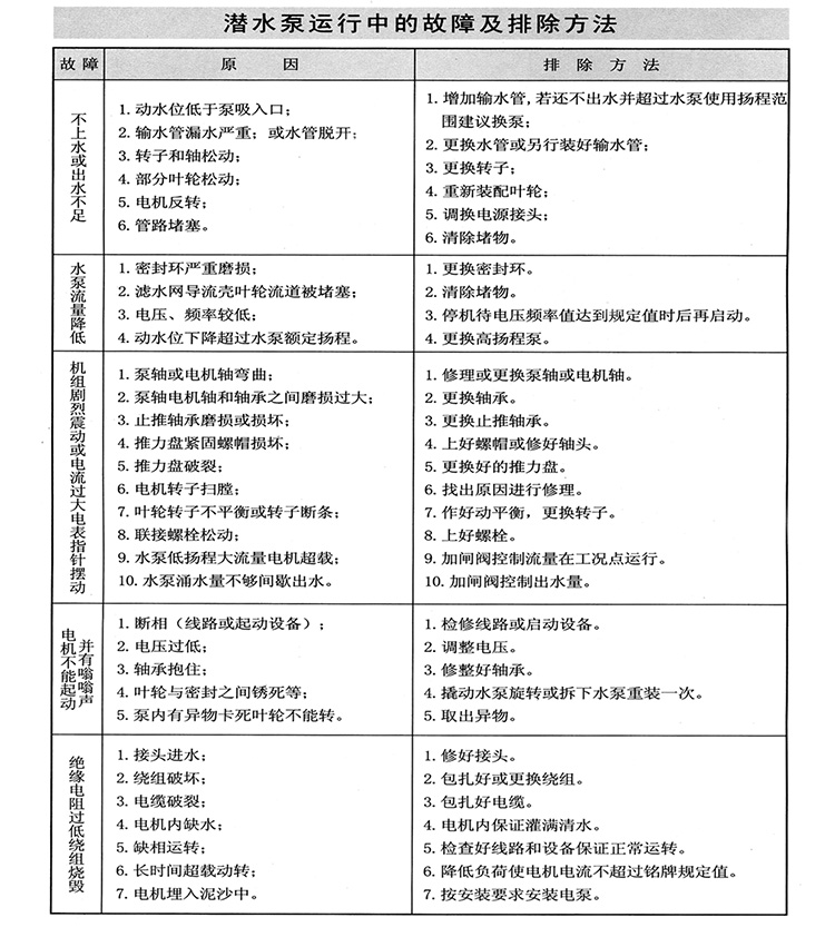 2.濾水網(wǎng)、導(dǎo)流殼、葉輪流道被堵塞。