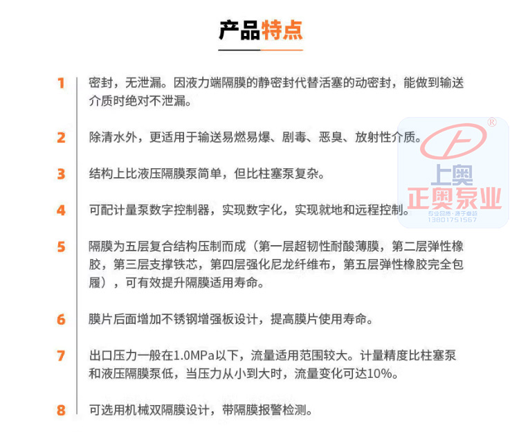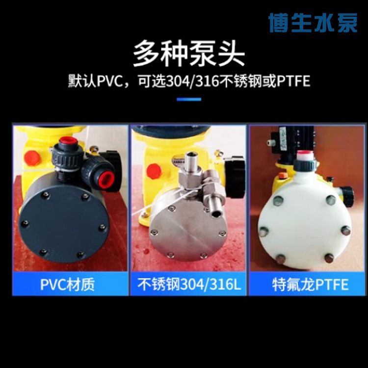 3、接觸介質(zhì)泵頭為PVC、可選PTFE、及不銹鋼材質(zhì)。