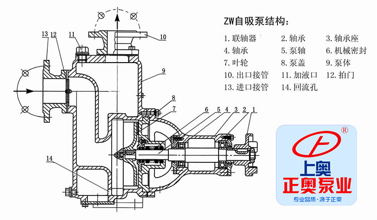 ZW型自吸式無堵塞排污泵(結構圖)