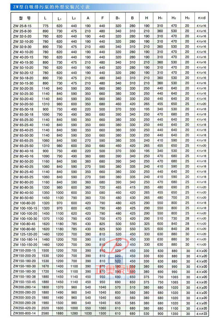 三、ZW型自吸式無堵塞排污泵技術參數(shù):