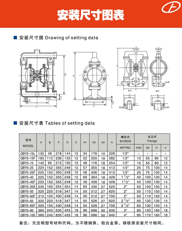 流體部件材質(zhì)有:鋁合金、鑄鐵、聚丙烯、不銹鋼、隔膜根據(jù)不同膜片材質(zhì)分別有:丁晴橡膠、氯丁橡膠、聚乙烯、聚膠、聚醚橡膠、氟橡膠、氟塑料、特氟隆。以滿足不同液體介質(zhì)的需要。