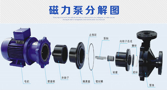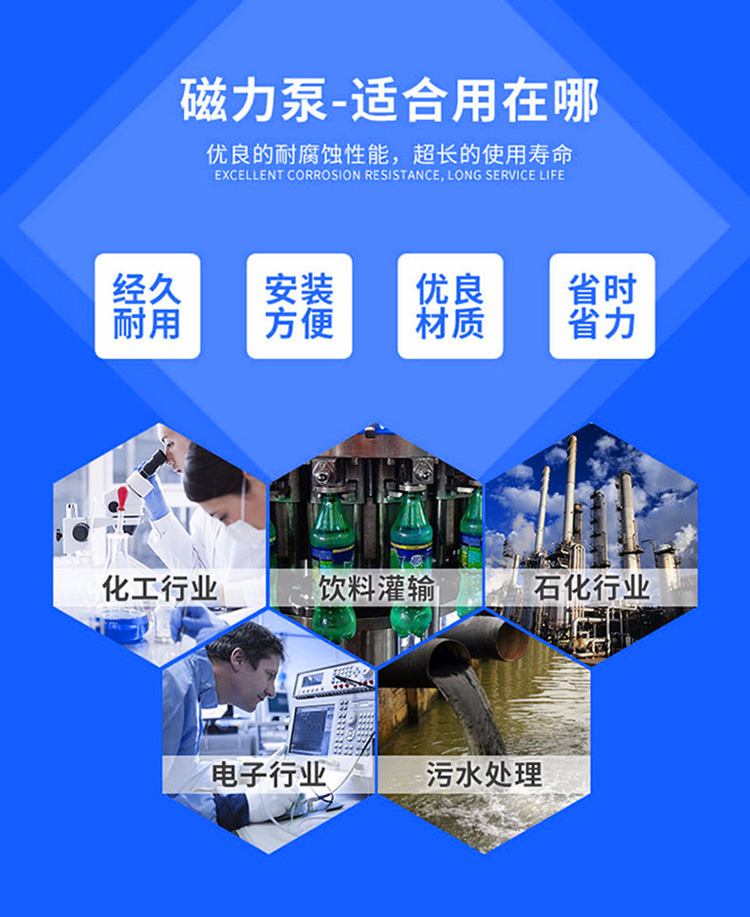 磁力泵以靜密封取代動(dòng)密封,使泵的過(guò)流部件處于完全密封狀態(tài),底徹解決了其他泵機(jī)械密封無(wú)法避免的跑、冒、滴之弊病。磁力泵選用耐腐蝕、高強(qiáng)度的工程塑料、鋼玉陶瓷、不銹鋼等作為制造材料,因此它具有良好的抗腐蝕性能,并可以使被輸送介質(zhì)免受污染。