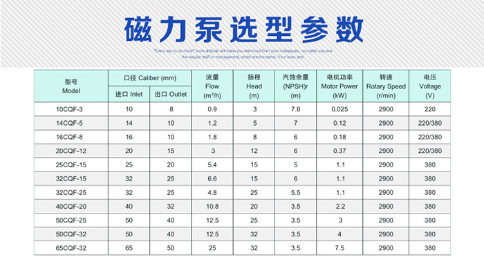 1.因磁力泵軸承的冷卻和潤(rùn)滑是靠被輸送的介質(zhì),所以絕對(duì)禁止空運(yùn)轉(zhuǎn),同時(shí)避免在工作中途停電后再啟動(dòng)時(shí)所造成吋空載運(yùn)轉(zhuǎn)。 2.被輸送介質(zhì)中,若含有固體顆粒,泵入口要加過(guò)濾網(wǎng):如含有鐵磁質(zhì)微粒.需加磁性過(guò)濾器。 3.泵在使用中環(huán)境溫度應(yīng)小于40℃ ,電機(jī)溫升不得超過(guò)75℃ 。 4.被輸送的介質(zhì)及其溫度應(yīng)在泵材允許范圍內(nèi)。工程塑料泵的使用溫度〈60℃,金屬泵的使用溫度〈100℃,輔送吸入壓力不大于0.2MPa,最大工作壓力1.6MPa、密度不大于1600^kg/m3,,粒度不大于30 X 10-6㎡/S的不含硬顆粒和纖維的液體。 5.對(duì)于輸送液為易沉淀結(jié)晶的介質(zhì),使用后應(yīng)及吋清洗,排凈泵內(nèi)積液。 6.磁力泵運(yùn)行500小時(shí)后,應(yīng)拆檢軸承和端面動(dòng)環(huán)的磨損惰況,若軸承和軸套的間隙大于0.5~1mm,葉輪軸向竄動(dòng)1. 5~2mm時(shí),應(yīng)更換軸承和軸向動(dòng)環(huán)。