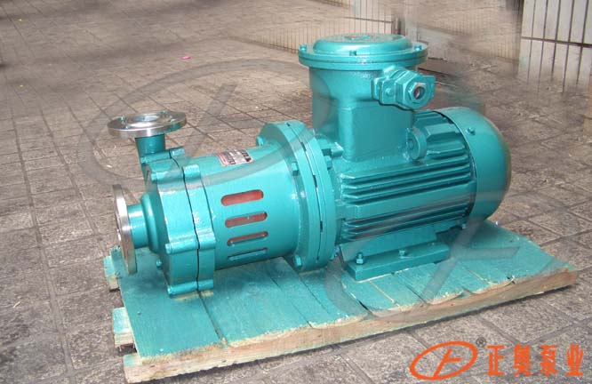 CQG型耐高溫磁力驅(qū)動泵(耐溫≤250℃)(簡稱磁力泵)通常由電機(jī),磁力偶合器水冷卻裝置和耐腐蝕離心泵四大部分組成,其主要特點(diǎn)是利用磁力偶合器傳遞動力,完全無泄漏。當(dāng)電動機(jī)帶動磁力偶合器的外磁鋼旋轉(zhuǎn)時(shí),磁力線穿過了間隙和隔離套,作用與內(nèi)磁鋼上,使泵轉(zhuǎn)子與電動機(jī)同步旋轉(zhuǎn),無機(jī)械接觸地傳遞扭矩。在泵的動力輸入端,由于液體被封閉在靜止的隔離套內(nèi),沒有動密封因而無泄漏,磁力偶合器的磁性材料采用了高溫介質(zhì)而保持強(qiáng)大的磁力扭矩。在電機(jī)與磁力偶合器之間加裝了水冷卻裝置,防止泵送高溫介質(zhì)之熱量傳導(dǎo)至電機(jī)。以保持電機(jī)的正常運(yùn)轉(zhuǎn),從而達(dá)到無泄露輸送高溫介質(zhì)。