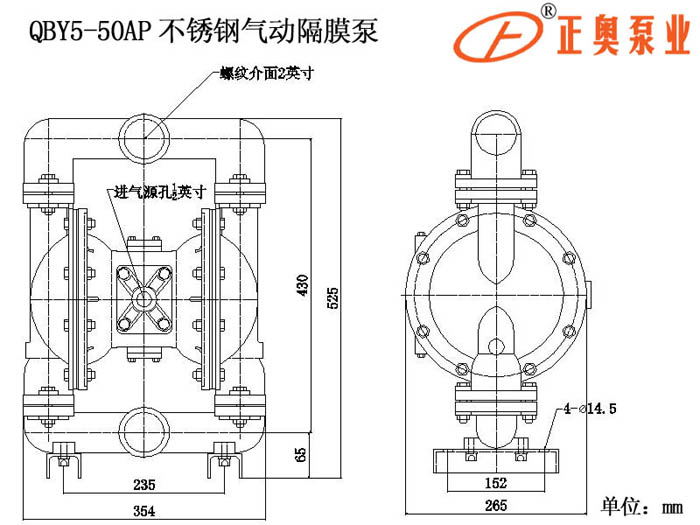 產(chǎn)品名稱:QBY5-50AP型不銹鋼螺紋氣動(dòng)隔膜泵【全新五代氣動(dòng)隔膜泵】