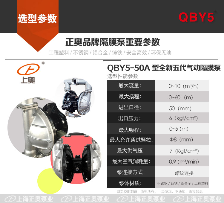 以方便用戶選型,正確使用上海正奧品牌隔膜泵