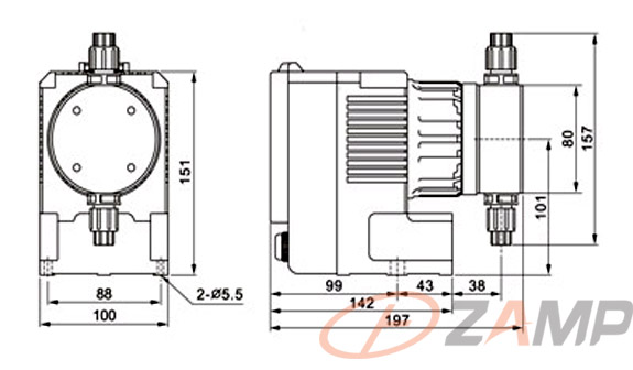 電磁計(jì)量泵是利用電磁推桿帶動(dòng)隔膜在泵頭內(nèi)往復(fù)運(yùn)動(dòng),引起泵頭膛腔體積和壓力的變化,壓力的變化引起吸液閥門和排液閥門的開(kāi)啟和關(guān)閉,實(shí)現(xiàn)液體的定量吸入和排出。