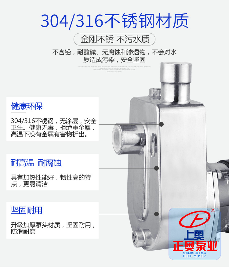 不銹鋼自吸式耐腐蝕離心泵可輸送溫度不高于103℃,含有細(xì)小軟顆;蚶w維質(zhì),帶腐蝕性或有衛(wèi)生要求的液體,廣泛適用于食品、飲料、醫(yī)藥、污水處理、化工、電鍍、漂染、精細(xì)化工等行業(yè)使用。