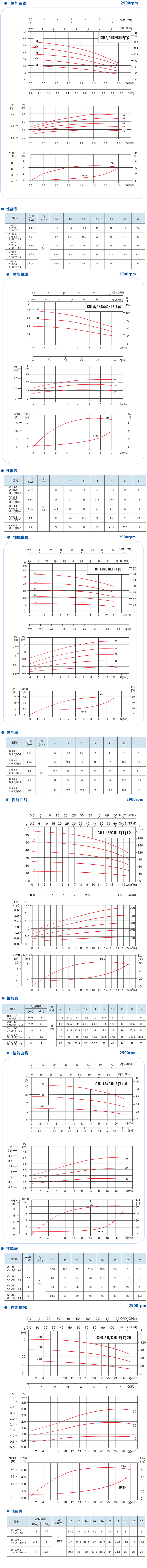 4、泵的使用參照加粗曲線的性能范圍,以防流量過小產(chǎn)生過熱和流量過大使電機過載等。